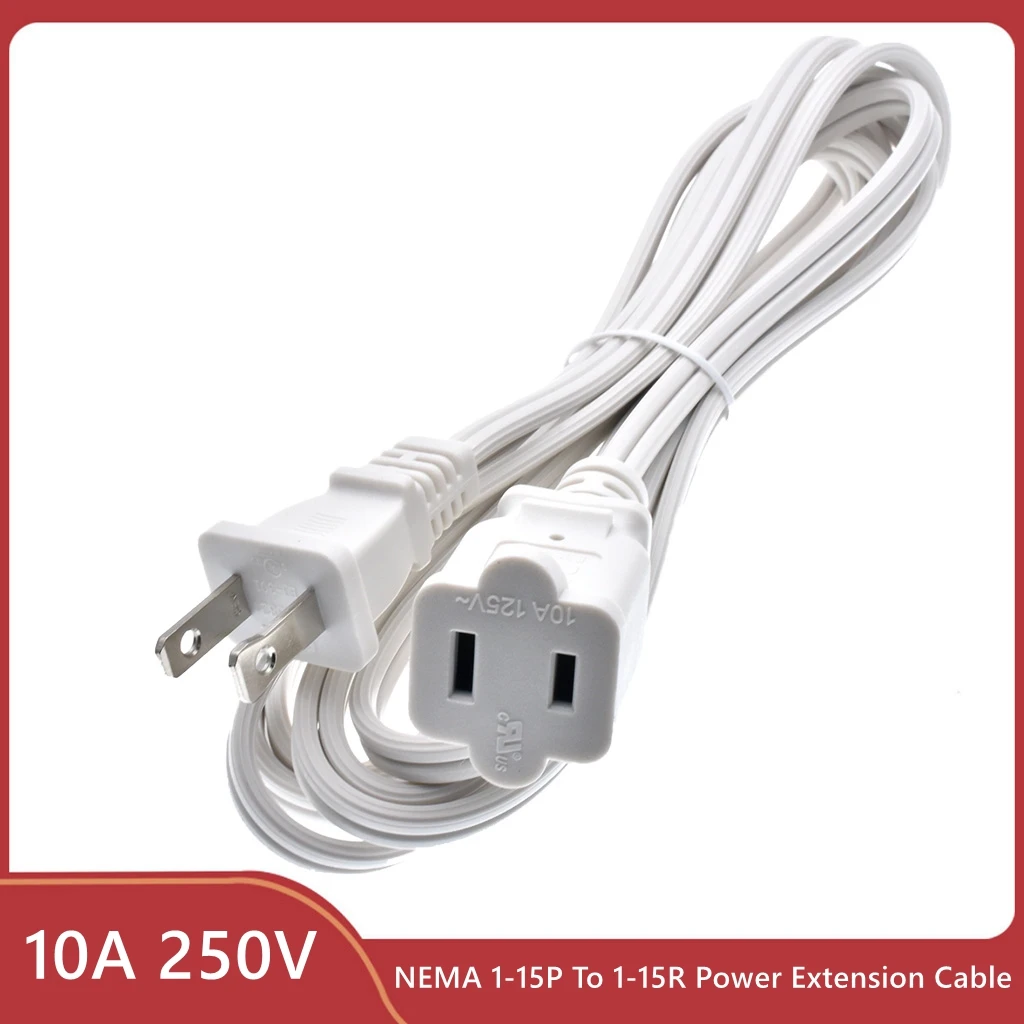 White color USA Outlet Saver Power Extension Cord, Nema 1-15P to Nema 1-15R, polarized 2pin USA extension cables, 300cm, 18AWG