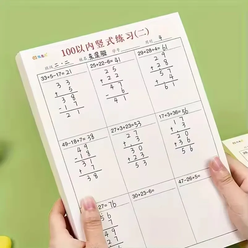 2 books/set Vertical Addition and Subtraction Practice Workbooks within 100 - Math Exercise Books