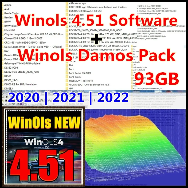 Newest winols 4.51+93GB WINOLS DAMOS NEW Big Archive Damos Mappacks for Winols Software BIG PACK Package Chip Tuning Maps Files