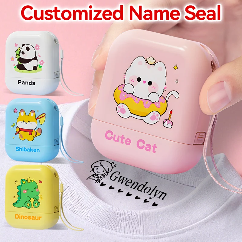 Custom Name Stamp for Laundry & Travel - Waterproof Ink Seal with Cartoon Icons, School/Kindergarten Organization Tool