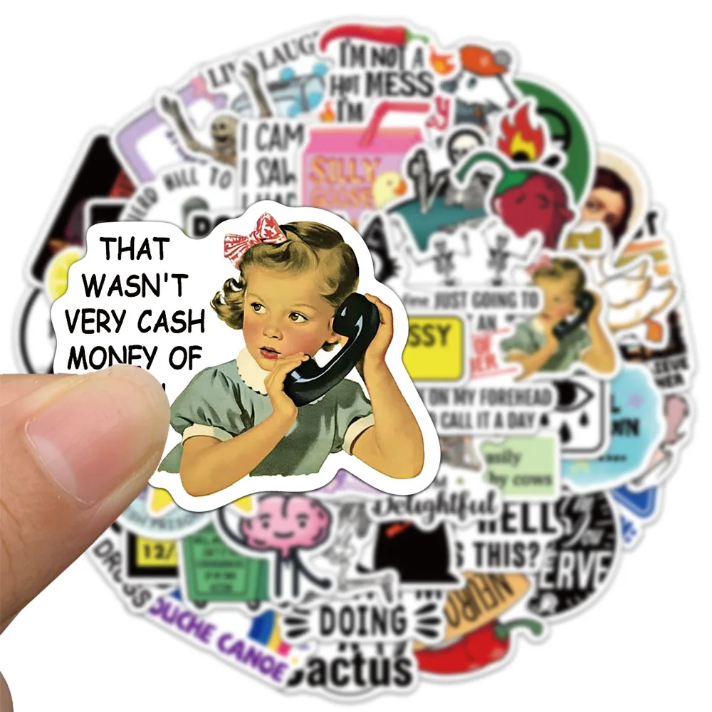 50PCS Snarky MEME Stickers Exquisite English Short Sentence Account Materials Phone Cases Laptop Suitcases Water Cups Waterproof