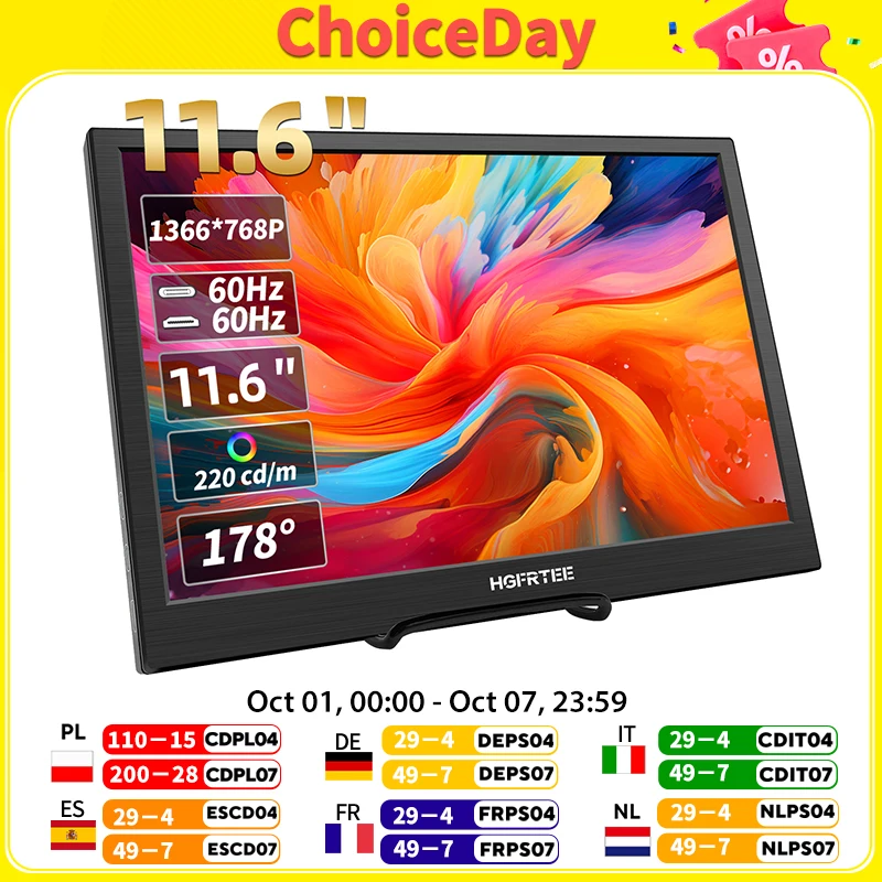 HGFRTEE 11.6inch Portable Monitor Gaming Extended Monitor HDMI-Compatible Laptop second screen For Switch/PS4/Raspberry Pi  Read more