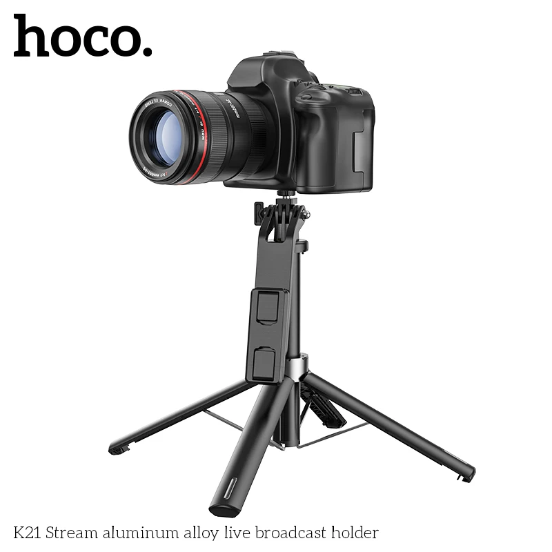 HOCO K21 Aluminum Alloy Live Broadcast Holder Wireless Selfie Stick with Bluetooth Remote Extendable Tripod Support PTZ Function  Read more