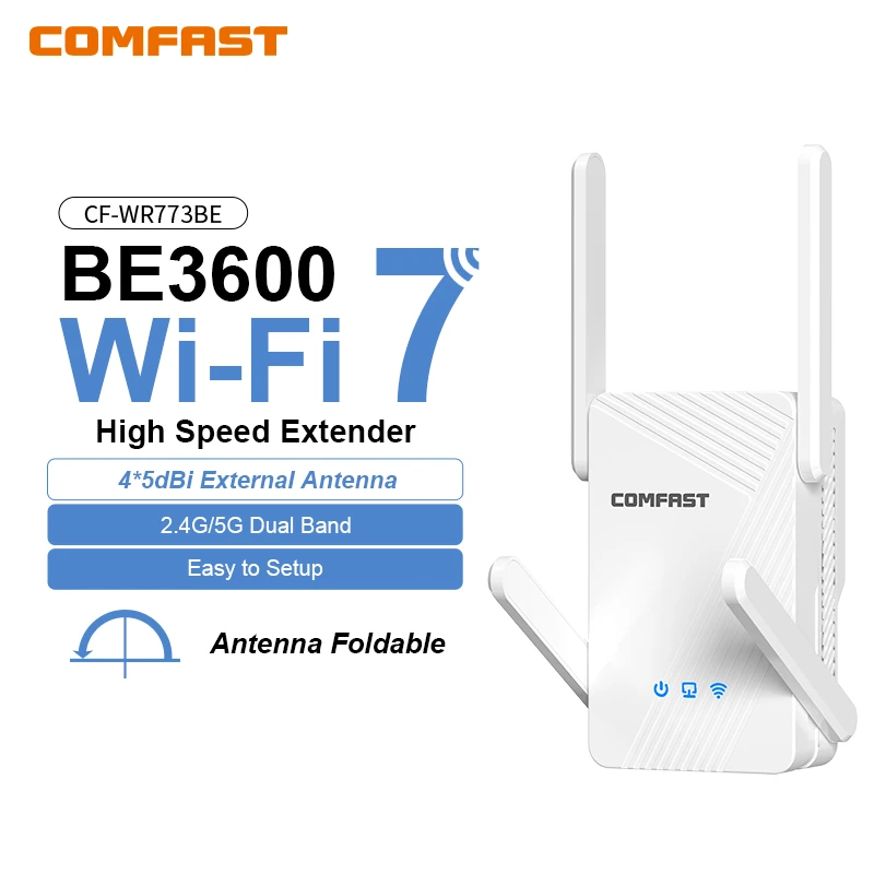 COMFAST 3570Mbps WiFi 7 Wifi Repeater dual band 2.4GHz/5.8GHz 4 high-gain antennas signal extender Wireless Signal Booster  Read more