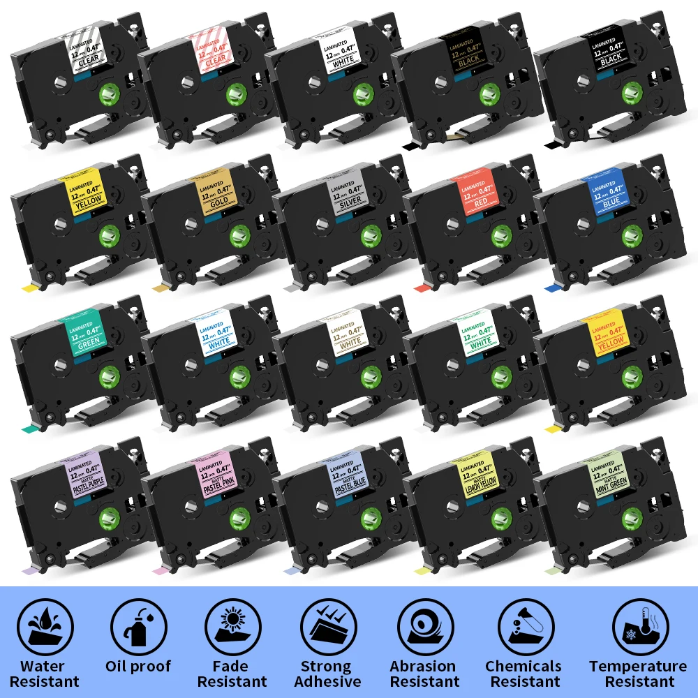6/9/12/18/24mm for Brother Tape 12mm Compatible tze Label Tape tze231 221 for Ptouch PTH110 H107 P710BT H105 E550W Label Printer