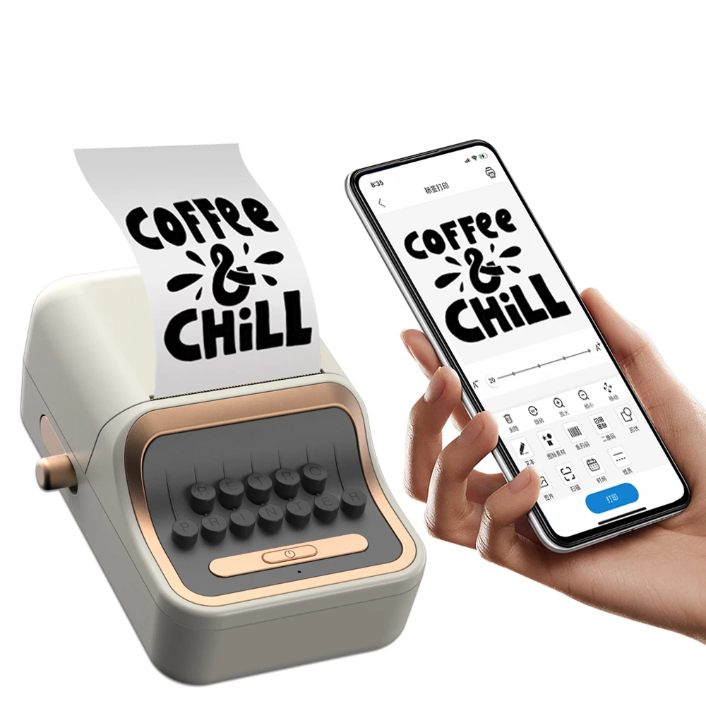Mini Vintage-look Label Printer Thermal Adhesive for Android iOS Mobile Pocket Sticker Labeling Maker Machine