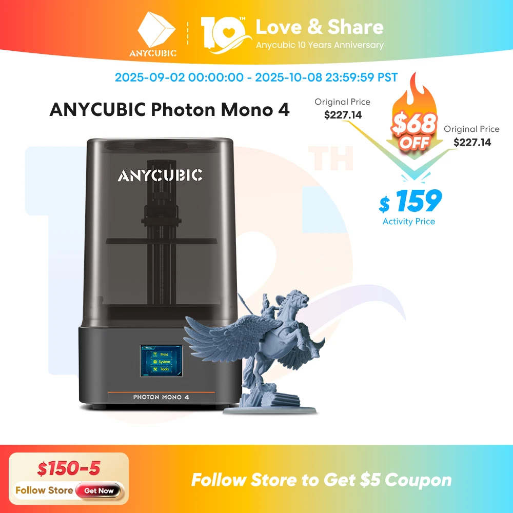 ANYCUBIC Photon Mono 4 3D Printer 10K 7'' high-definition screen UV Resin Printer High-Speed 3D Printing Size 153×87×165mm  Read more