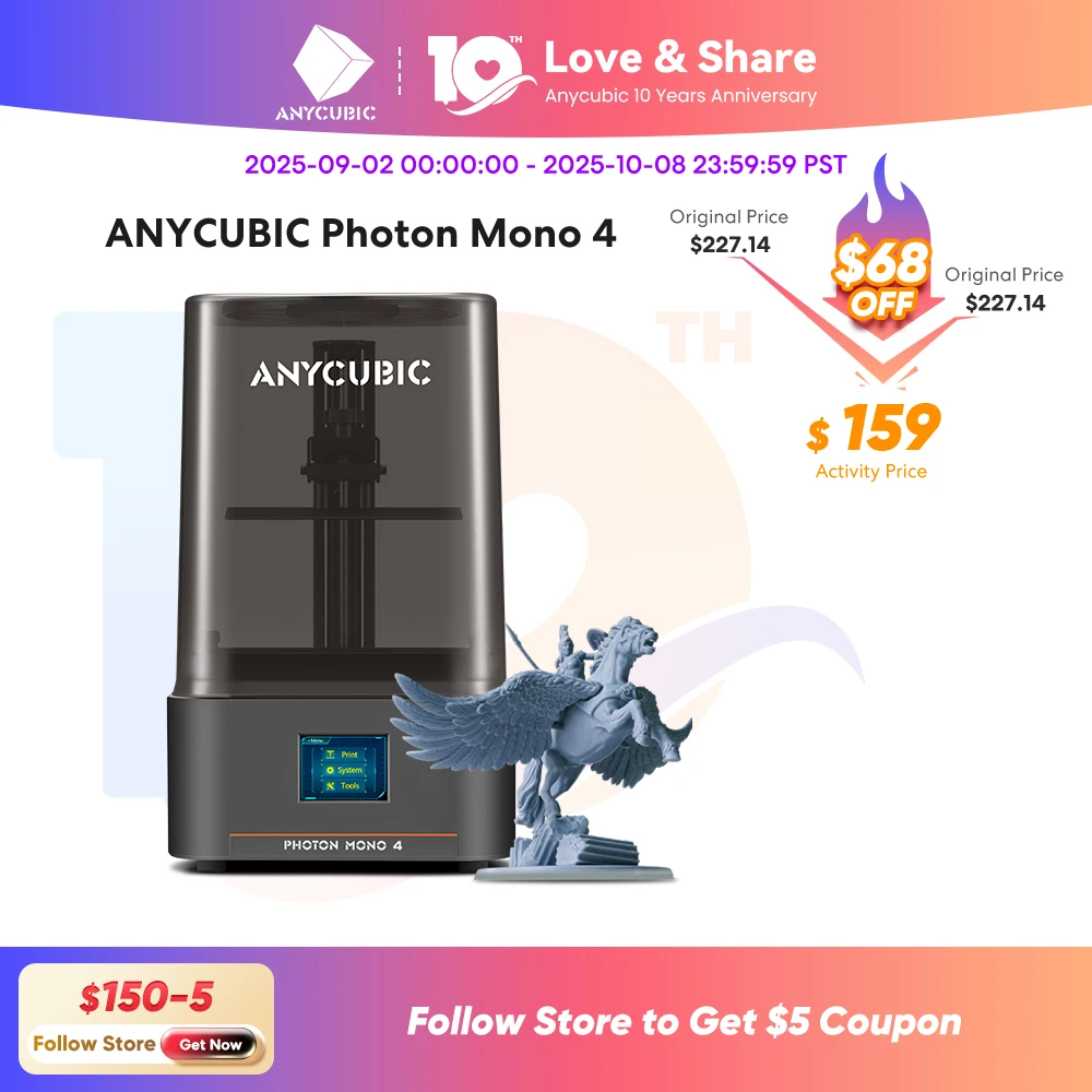 ANYCUBIC Photon Mono 4 AE Version LCD UV Resin 3D Printer with 7" 10K high-definition screen High-Speed 3D Printing 153×87×165mm  Read more