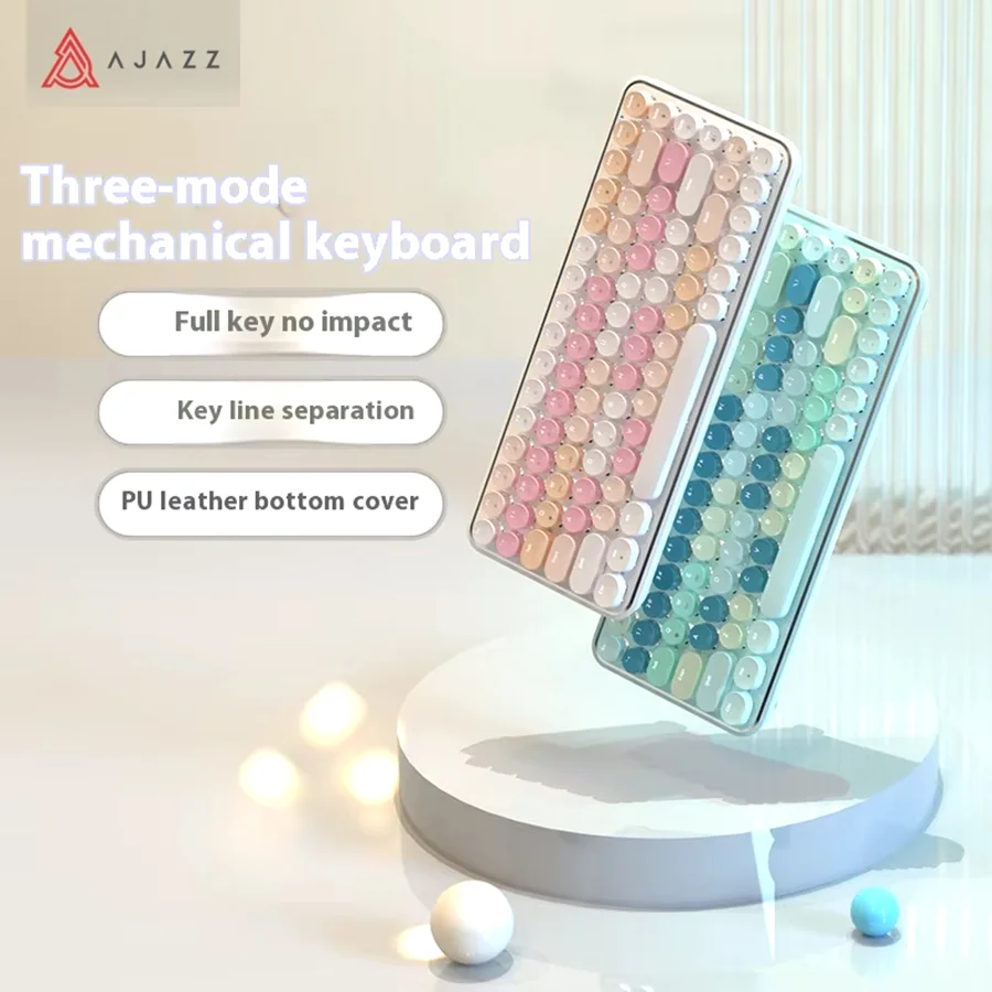 AJAZZ K840T Bluetooth Mechanical Keyboard 3-Mode 84keys Circular keycaps Low Latency Leather Design PC Luminous Gaming Keyboard  Read more