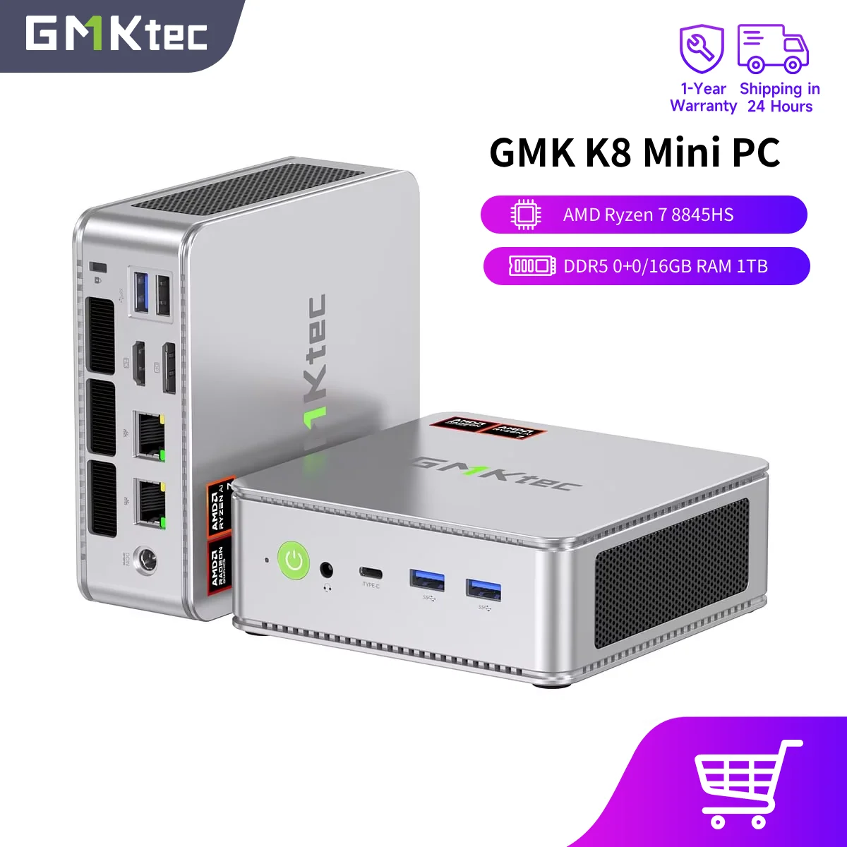 GMKtec NucBox K8 AMD Ryzen 7 8845HS DDR5 0+0/16GB RAM 1TB Mini PC PCIe3.0/4.0 Window 11 Pro WiFi 6E Mini Desktop Computer USB4.0