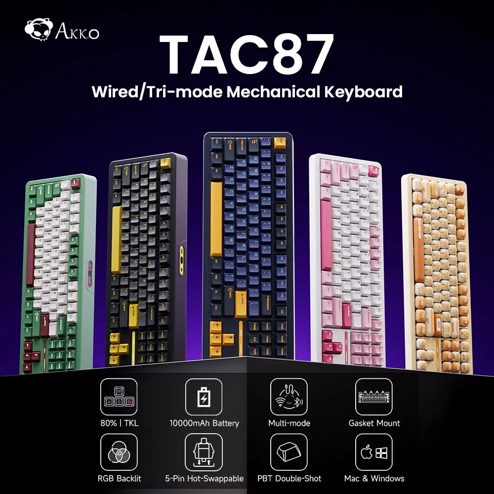 Akko TAC87 Mechanical Keyboard 80% TKL Customized Hot-swappable RGB USB Wired/2.4g&BT Wireless Gaming Keyboard Gasket Structure  Read more