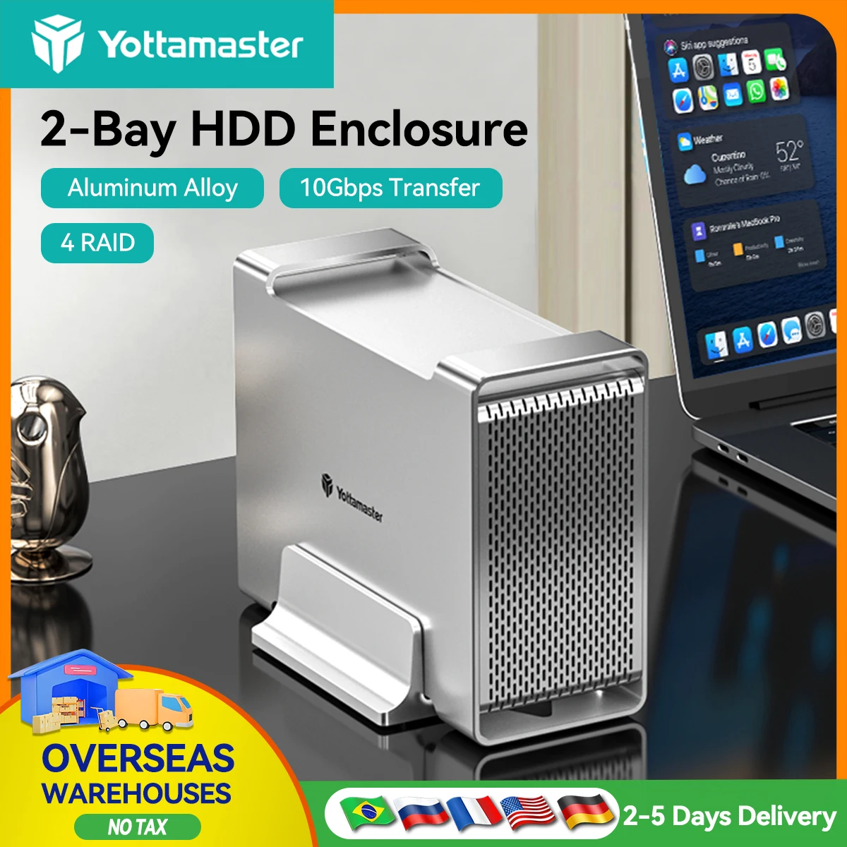 【Local Warehouse】Yottamaster 2 Bay Aluminum Alloy RAID USB3.1 10Gbps Hard Drive Enclosure 2.5" 3.5" SATA SSD/HDD External Case