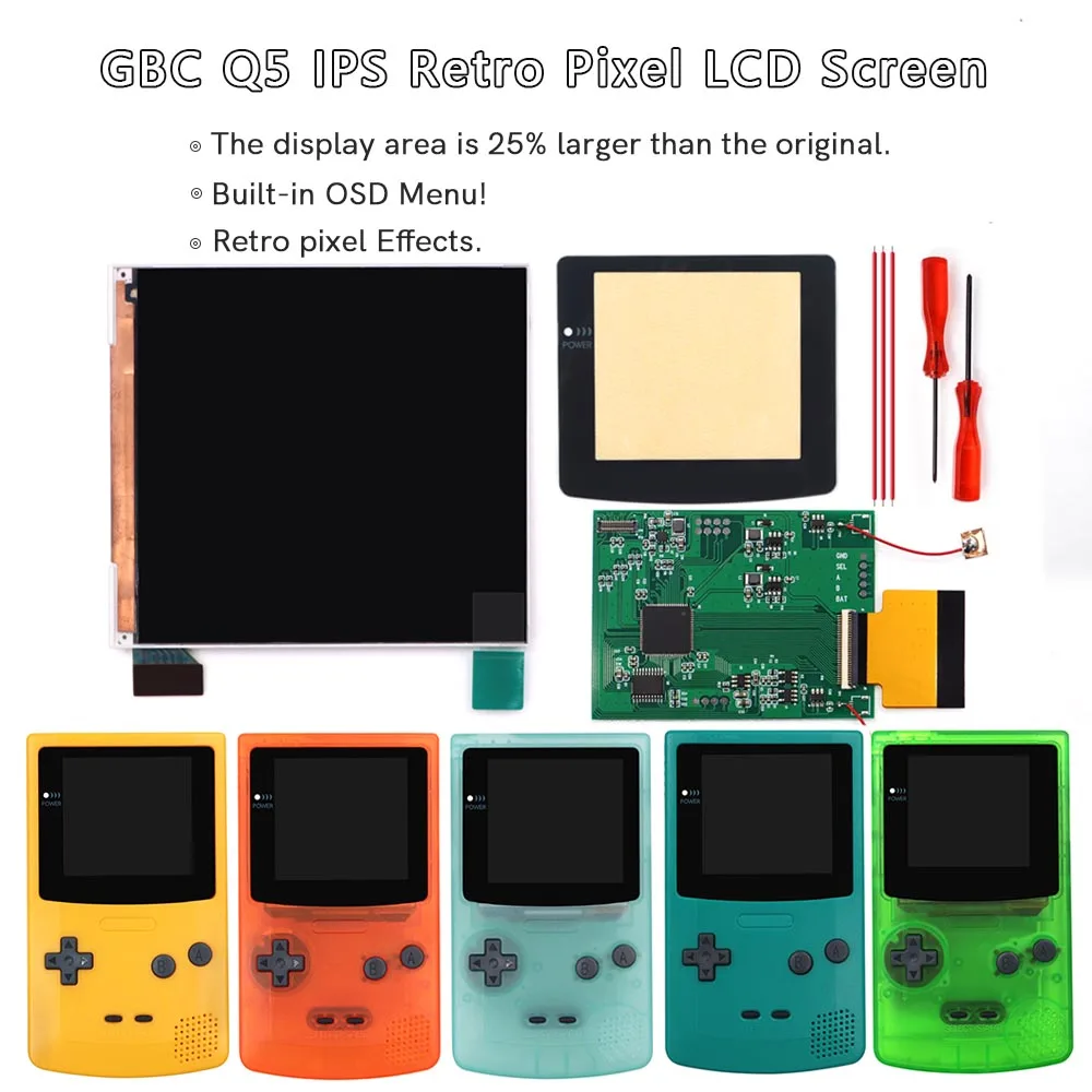 HISPEEDIDO Q5 Screen GBC IPS Backlight LCD Kits 8 Color Retro Pixel Backlight Display With Pre-cut Shell For GameBoy Color