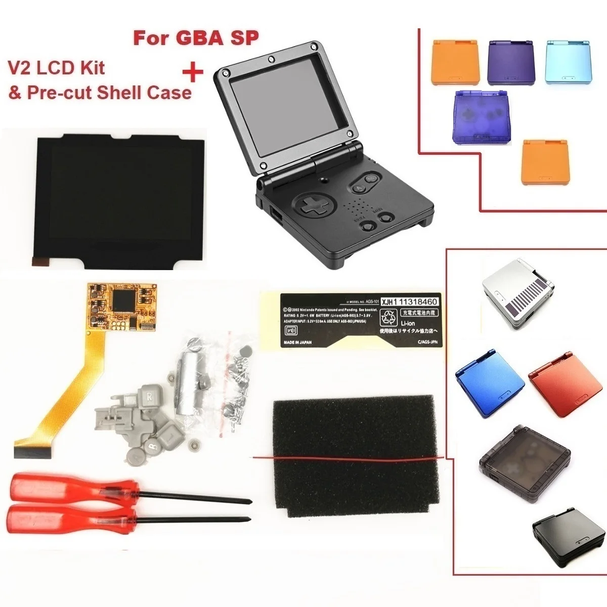 V2 IPS Screen LCD Kits for GBA SP Backlight LCD Screen 5 Levels Brightness V2 Screen For GBA SP Console And pre-cut Shell