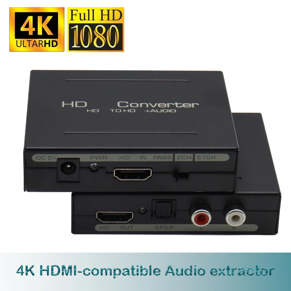 4K HDMI-Compatible Audio Extractor Optical Toslink Spdif R/L RCA Analog Video Adapter HD to HD splitter with Audio Converter