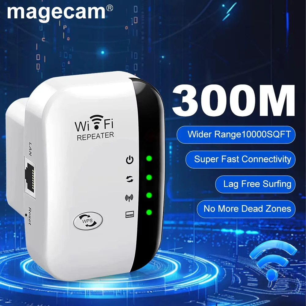 Magecam 300Mbps Wireless WiFi Repeater WiFi Range Extender Wireless 4 Status Light Internet Repeater Long Range Amplifier
