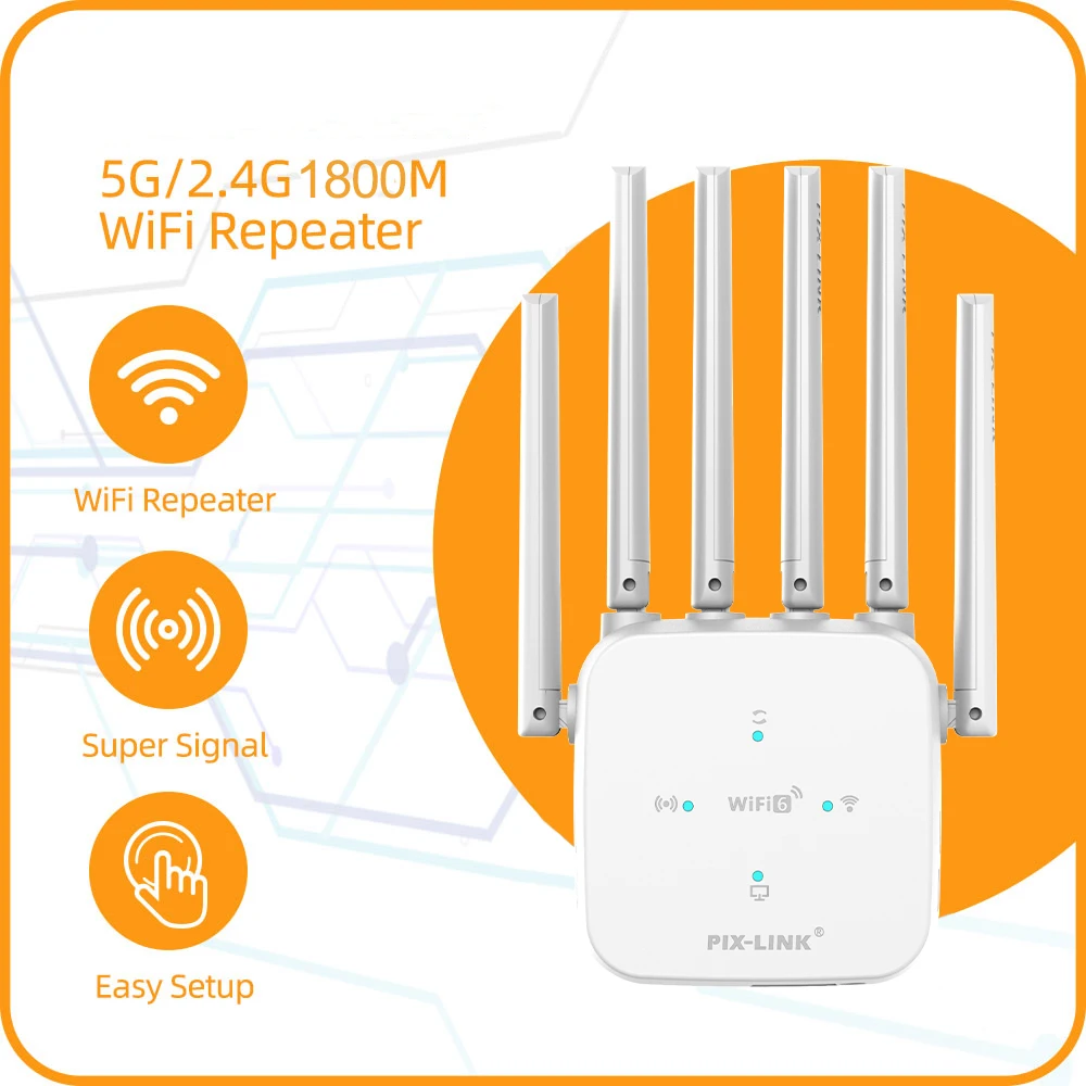PIX-LINK WiFi6 5G/2.4G Dual Band 1800M WiFi Repeater Wireless Range Extender Signal Booster Home Office Amplifier AX25