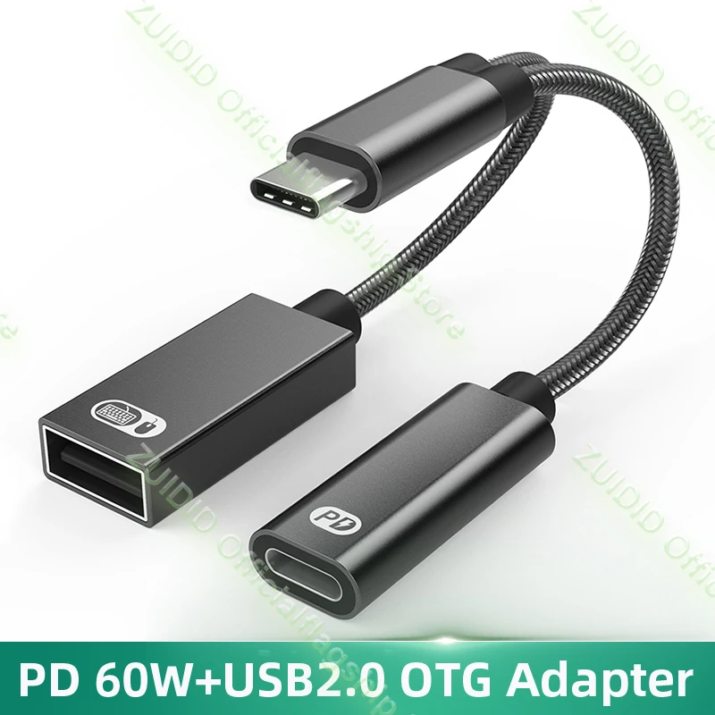2 in 1 PD 60W USB C OTG Charging Adapter Cable Type C to USB 2.0 Data Converter for iPad Pro Samsung Huawei Xiaomi Laptop Tablet