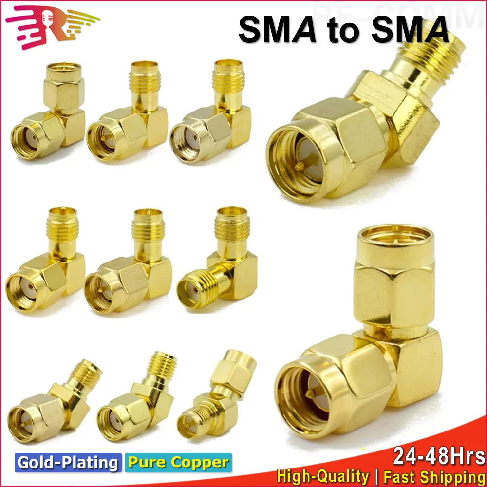 All Copper SMA Adapter Kit SMA Male Female to RP-SMA Right Angle 90 135 Degree Straight T Type Splitter RF FPV Antenna Connector