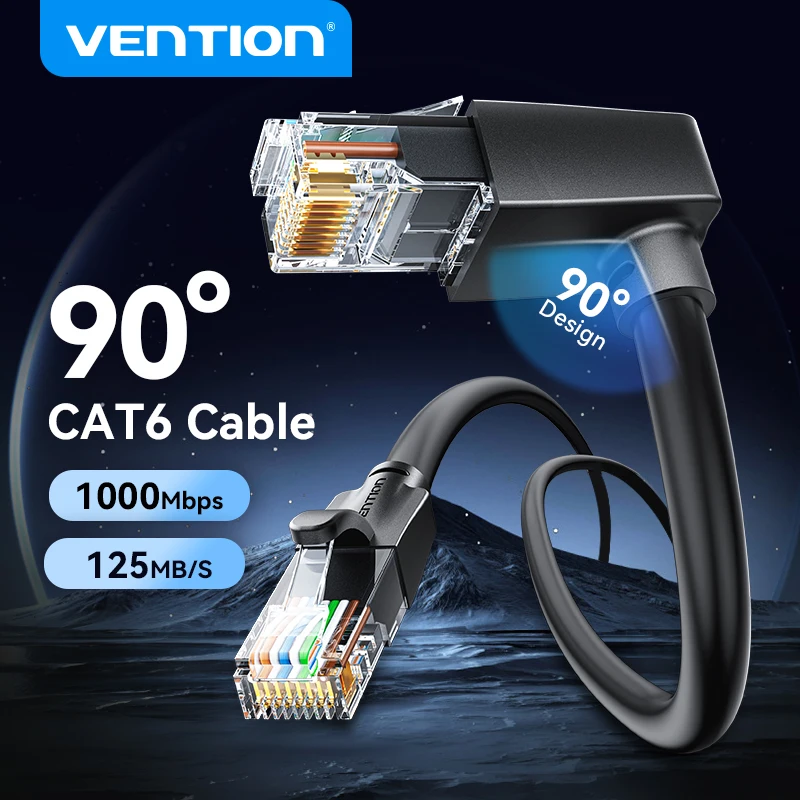Vention Cat6 Ethernet Cable 90° Right Angle Design CAT 6 Networking Internet Lan Cord for Laptops PS5 4 Xbox Router RJ45 Cable