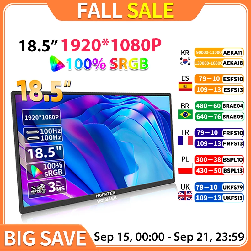 HGFRTEE 18.5inch Portable Monitor 100Hz RGB100% With VESA Hole & Back bracket Laptop Extended Display ADS-IPS HDR Screen  Read more