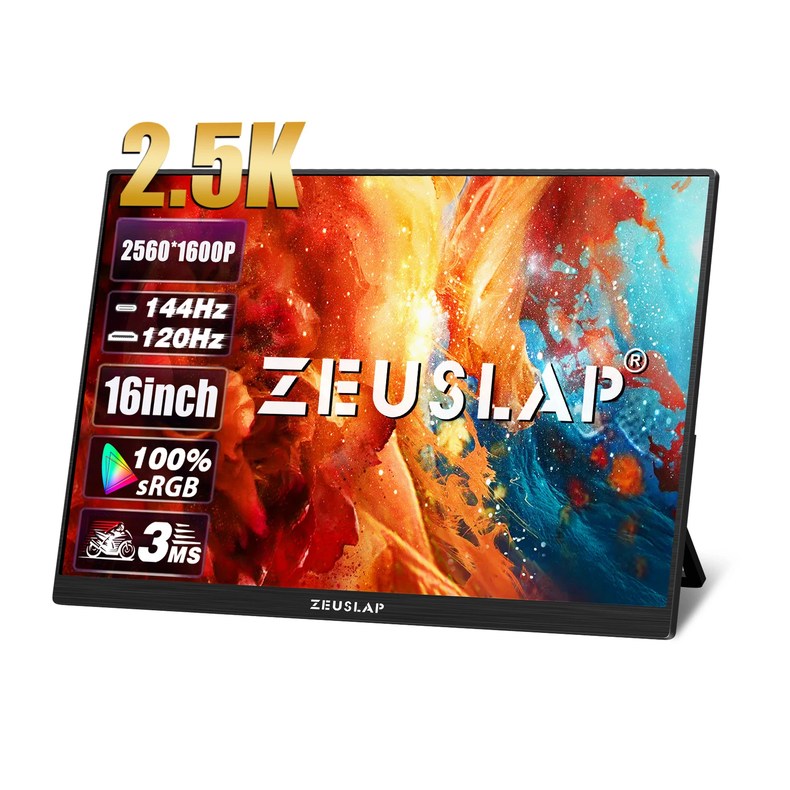 ZEUSLAP 16" QHD 2.5K 144Hz Gaming Portable Monitor Built-in Rear Support Bracket for Phone, Nintendo Switch, Laptop, PC sub screen