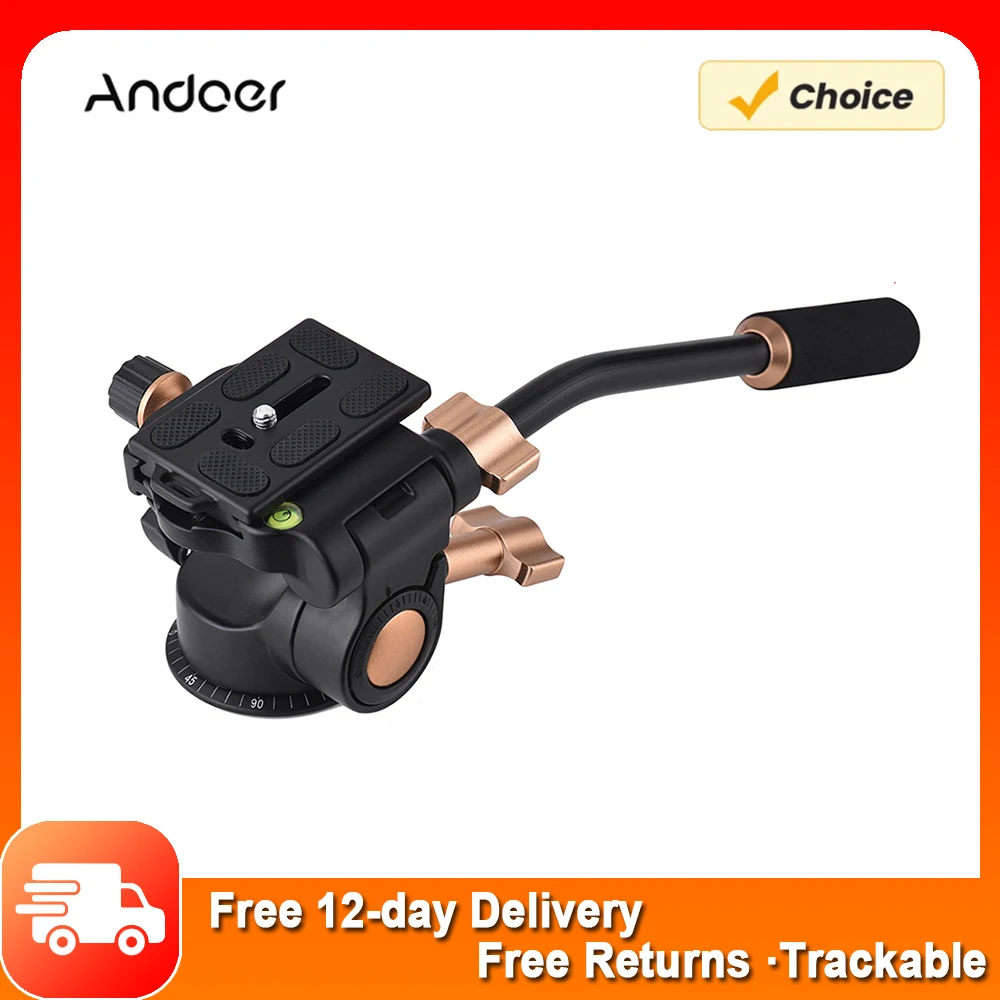 Andoer Q08S Aluminum Alloy 3-Way Damping Video Head Tripod Head w/ Pan Bar Handle 360° Panoramic Shooting 1/4" 3/8" Screw Hole