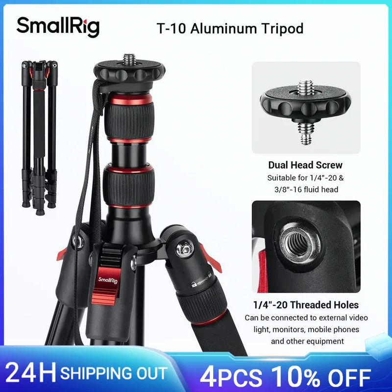 SmallRig T-10 Camera Tripod, 68" Foldable Aluminum Tripod & Monopod Compatible w 1/4"-20 & 3/8"-16 Video Head for Camera Phone