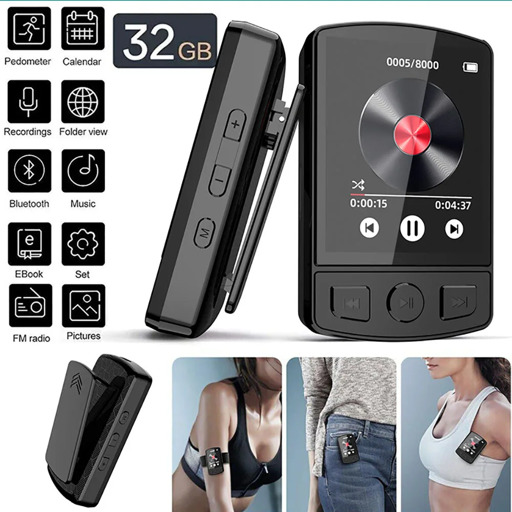 32GB Clip mp3 music player with BT 5.0, Lossless sound Sports MP3 player support FM radio voice recording and up to 128GB TF card