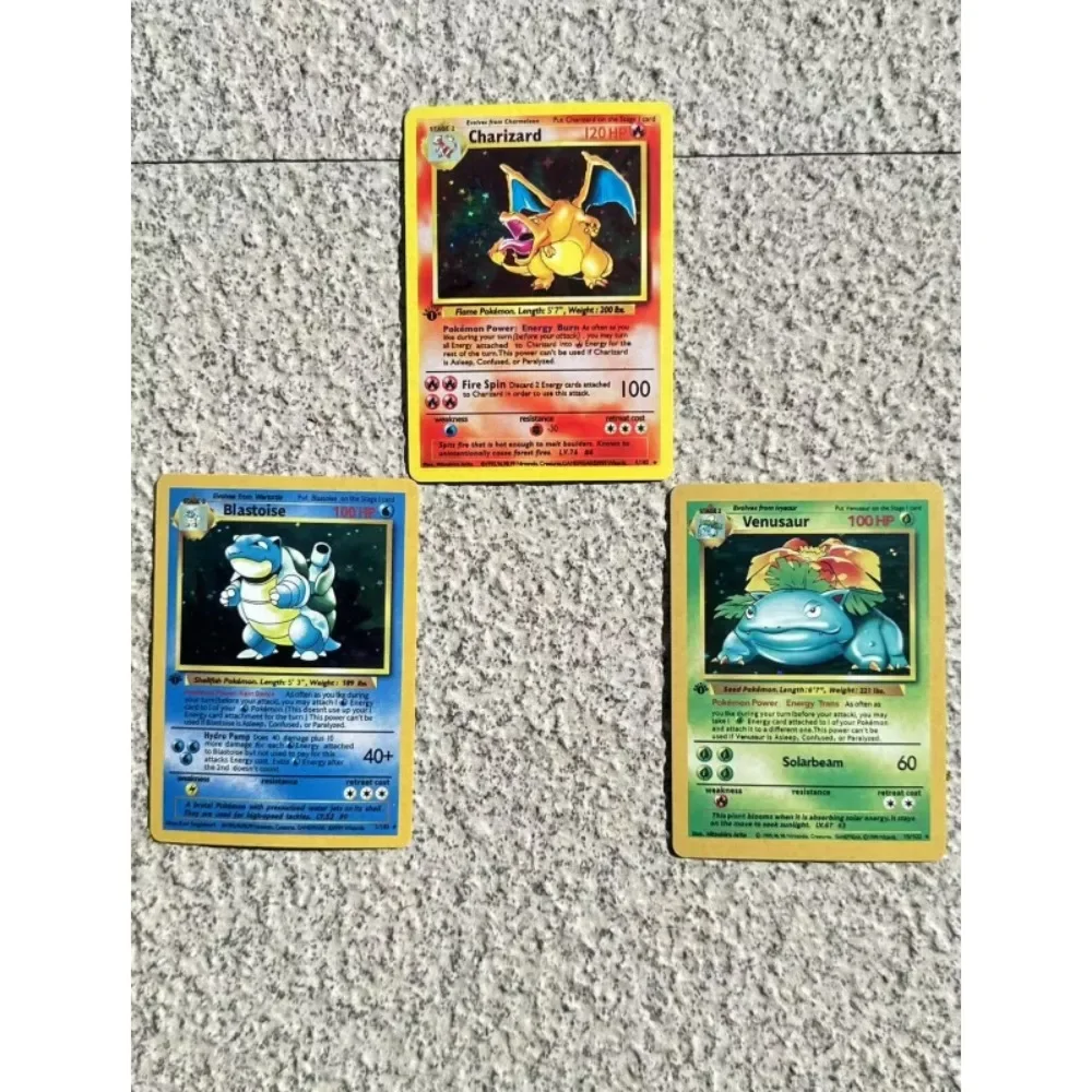 DIY 1996 HP PV PTCG Pokemon 1st 3PCS/Set Charizard Blastoise Flash Cards Anime Peripheral Game Collection Card Holiday Gift