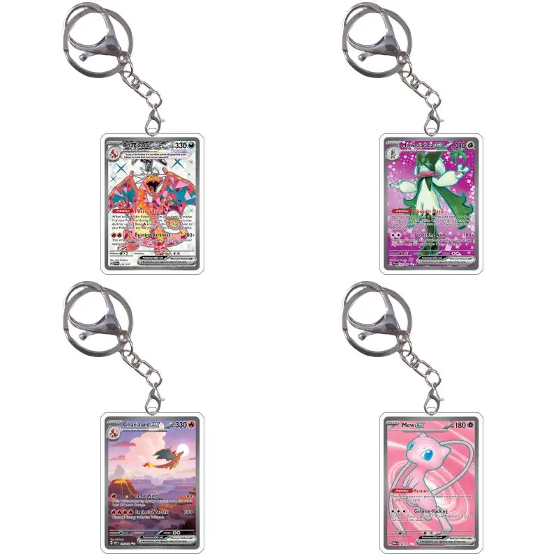 Pokemon Keychain Cards Style Mew Charizard Alakazam Magikarp SV2 151 Anime Game Characters Self Made Acrylic Pendant Decoration
