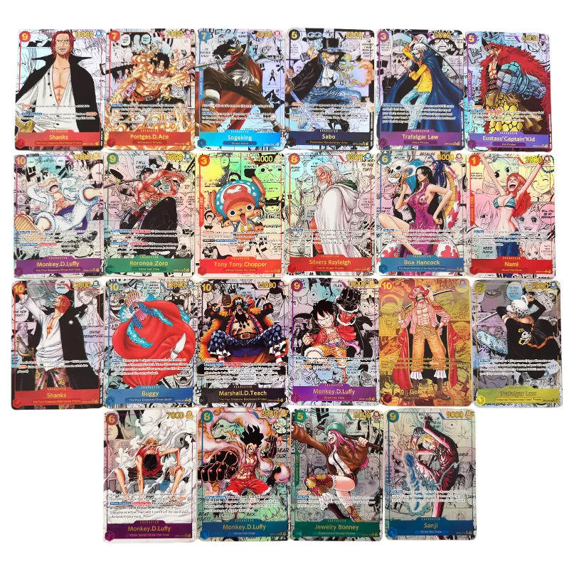 22pcs/set One Piece English Manga Version OPCG Replica Shanks Law Nami Roger Nika Luffy Sanji Teach Game Anime Collection Cards
