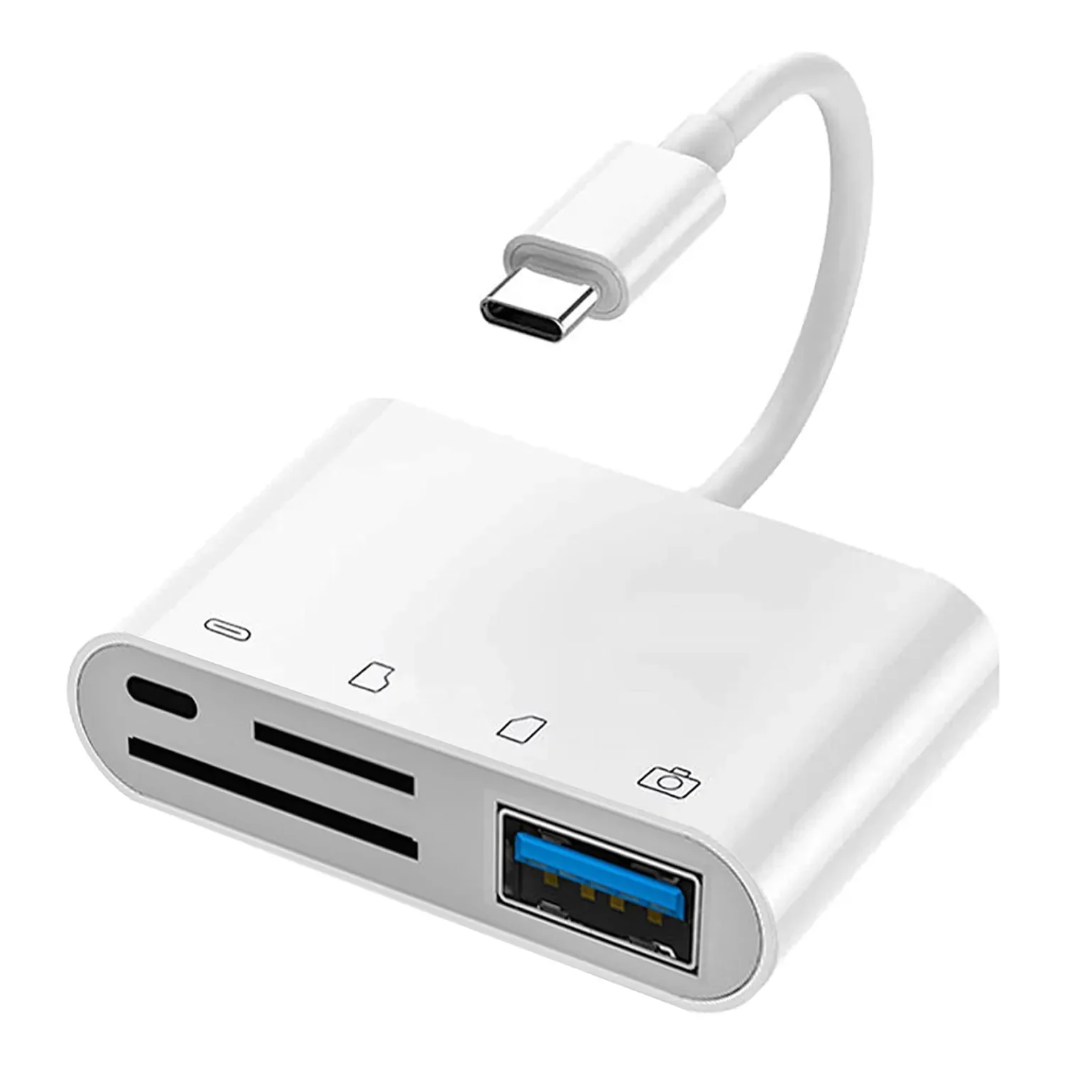 4 in 1 USB OTG Card Reader Compatible SD/TF Card Camera Memory For iPhone 16 Samsung Huawei Xiaomi Fast Charging