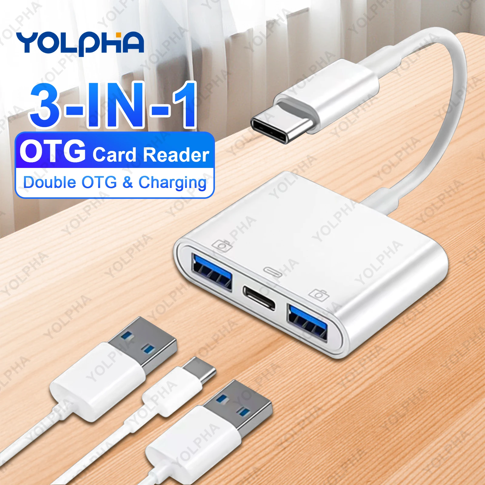 3 in 1 USB C to USB OTG Card Reader Flash Drive with Type C Charging Port Connect U Disk/Mouse/Keyboard for Type C Phone Adapter