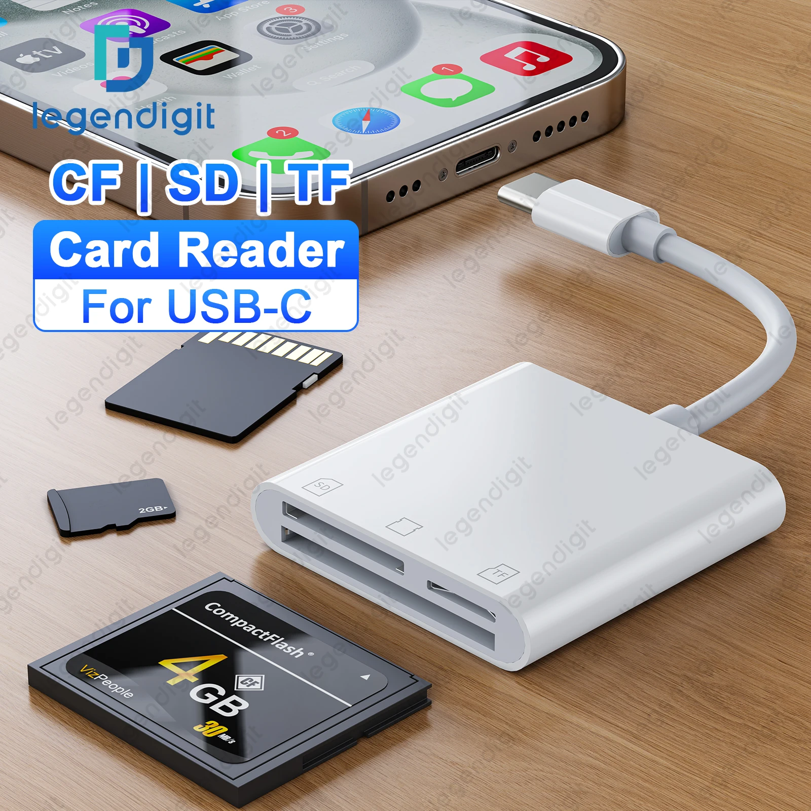 TypeC 3 Slots Memory Card Reader USBC to CF SD TF OTG Adapter MicroSD Card Reader for iPhone15 iPad MacBook Laptop Camera Drone  Read more