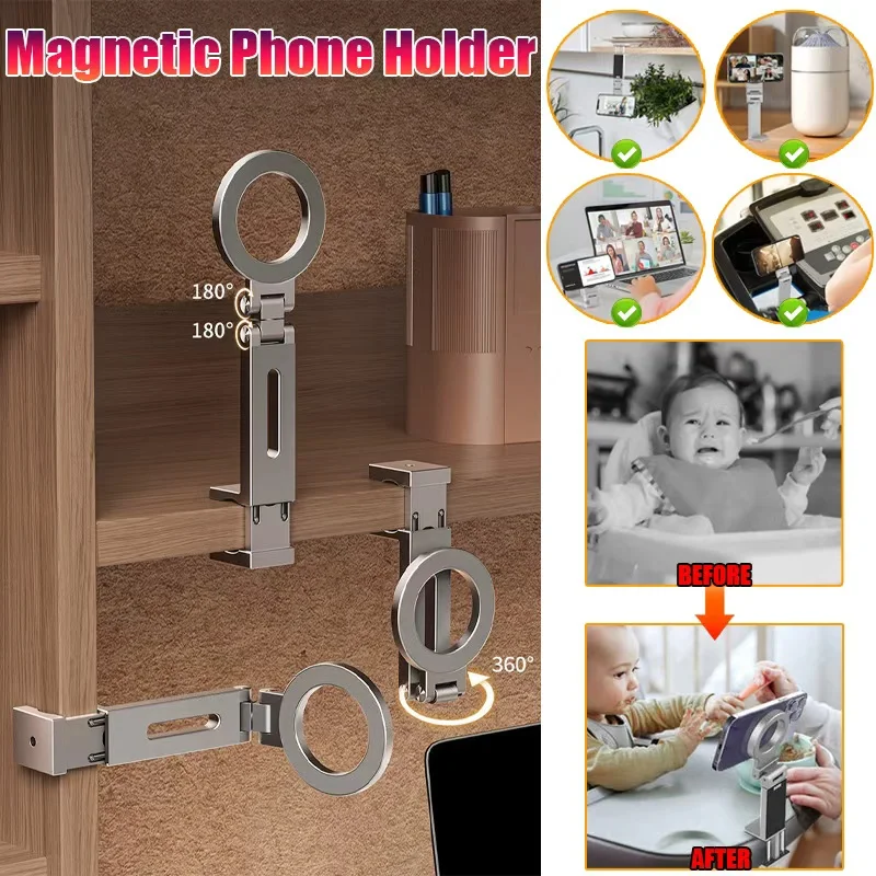 Universal Foldable Magnetic Phone Holder 360° Rotation Hands-Free for iPhone 16-12 Airplane Travel Desk