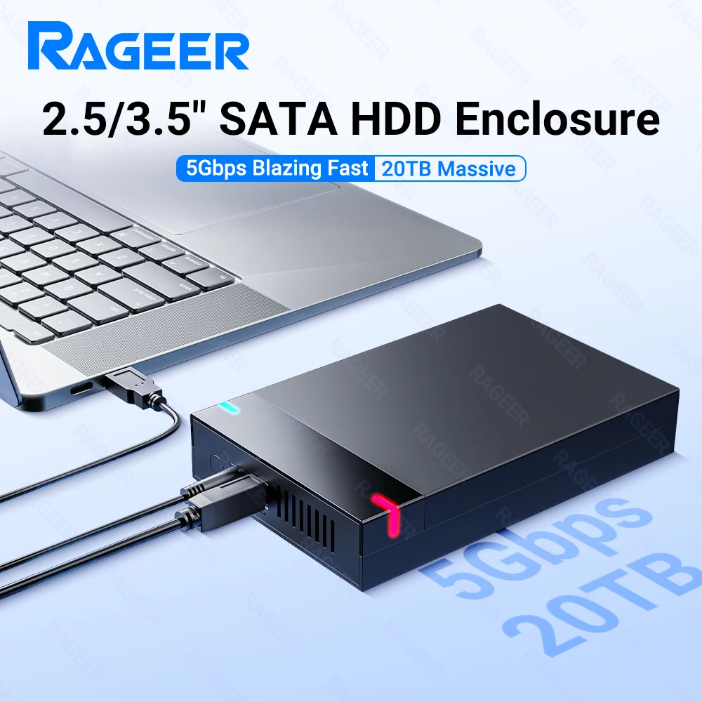RAGEER 3.5"/2.5" HDD External Hard Drive Enclosure With power supply - USB 3.0 to SATA Adapter for PC, Laptop