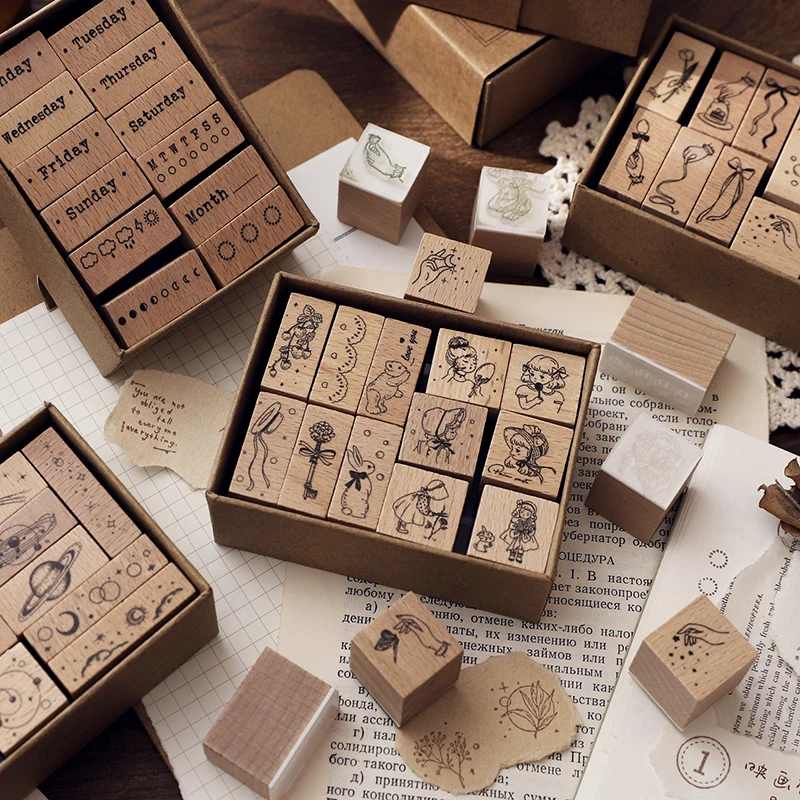 Jenny Chinese Character Number Universe Flower Week Wooden Rubber Stamp Scrapbooking Deco DIY Craft Standard Wooden Stamps