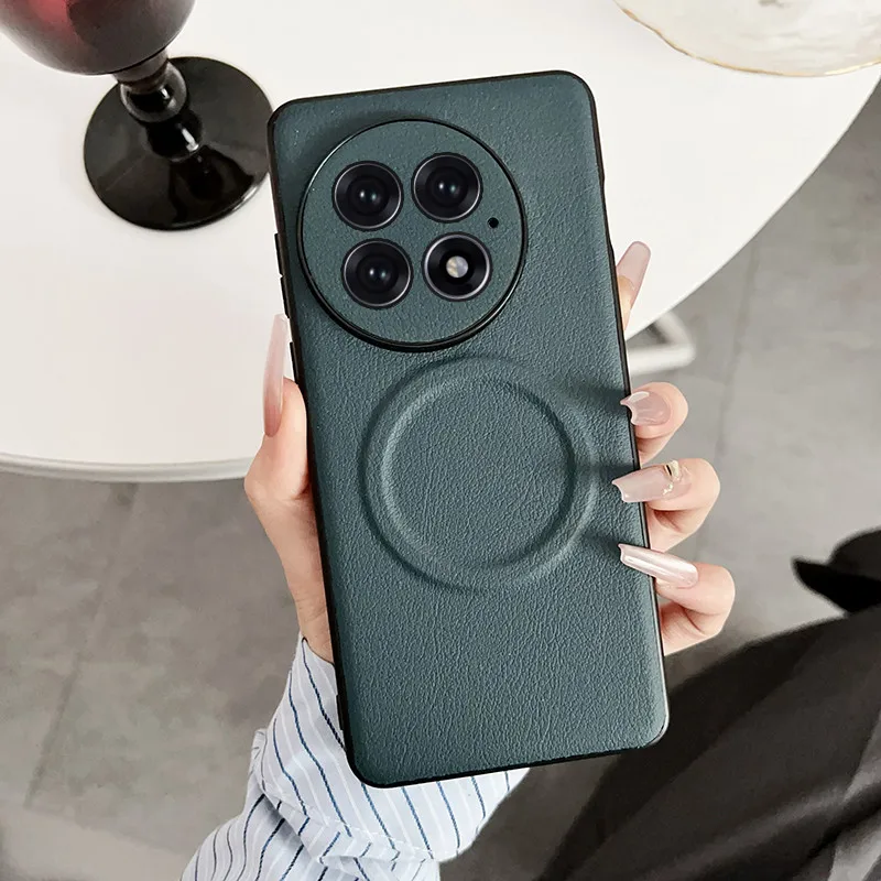 For OnePlus 13 12, Ace 5 Pro, 13R Case ELVEV PU Plain Leather +PC Anti-slip Ultra Thin Suction Cover
