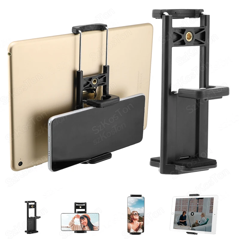 2 In 1 Universal Tablet Phone 1/4" Tripod Mount Clamp Holder Bracket Selfie Clip Stand
