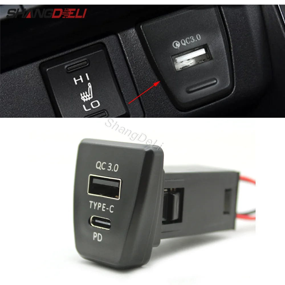 1PC Car Charger QC3.0 USB Type-c Interface Adapter Charging Interface Socket for Toyota Rav4 2020 2021 Accessories