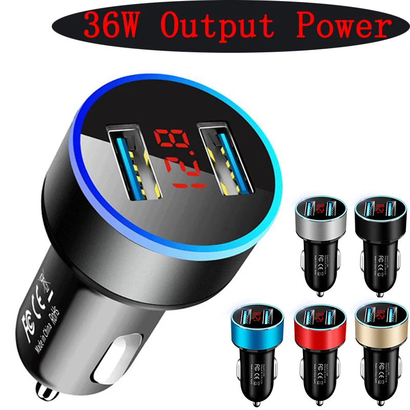 Dual USB Car Cigarette Lighter Charger LCD Display Car Charger Adapters for IPhone Xiaomi Huawei Auto Accessories