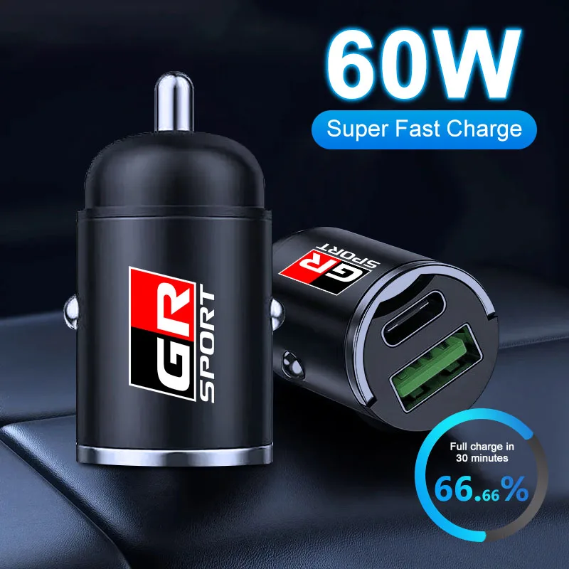 1Pcs Car Charger USB Type-C Fast Charging Adapter Car Accessories For Toyota sport GR Sport RAV4 C-HR Avensis Prado Prius TRD