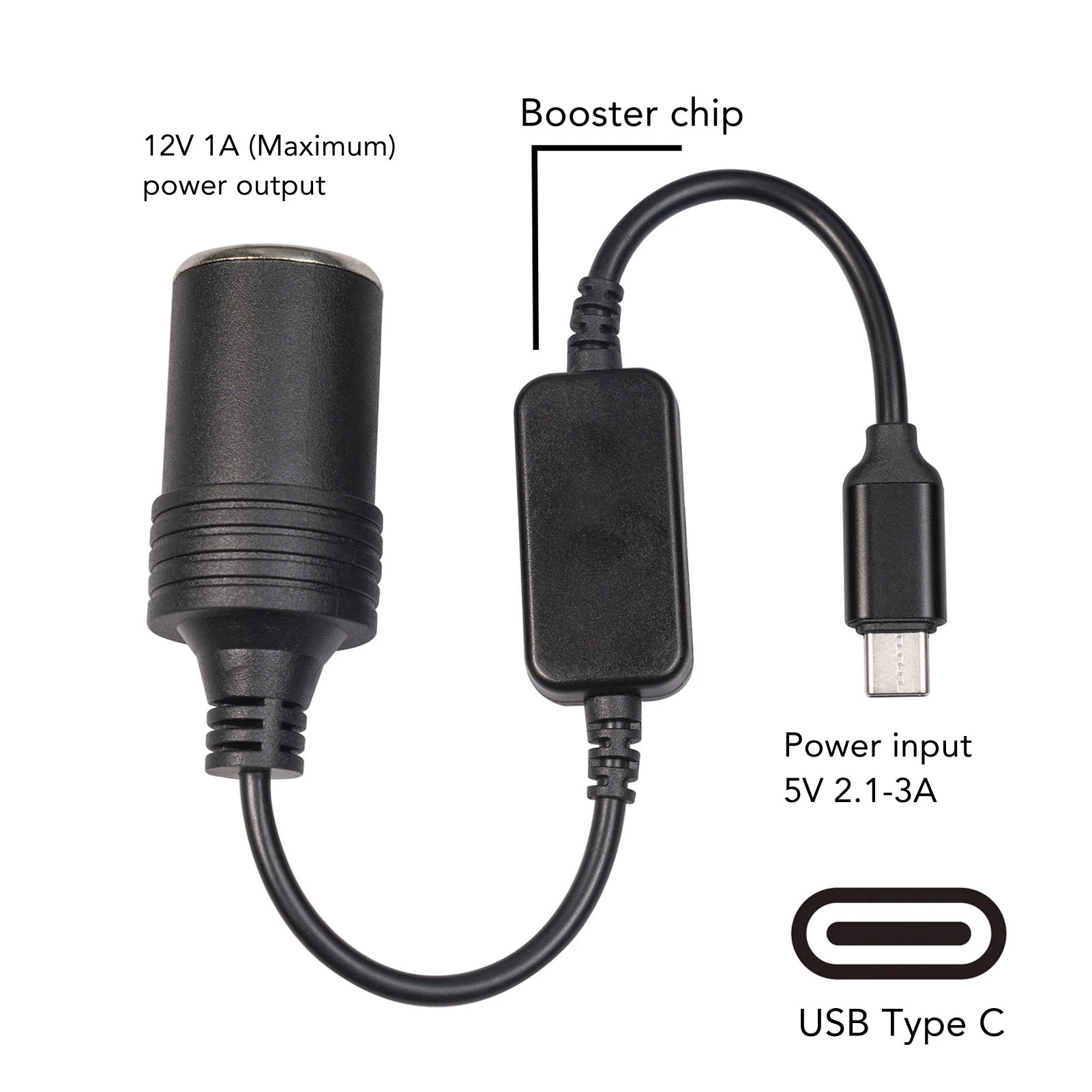 5V USB C Male to 12V Car Cigarette Lighter Female Power Adapter Converter for Car Electronics Accessories 11.8in