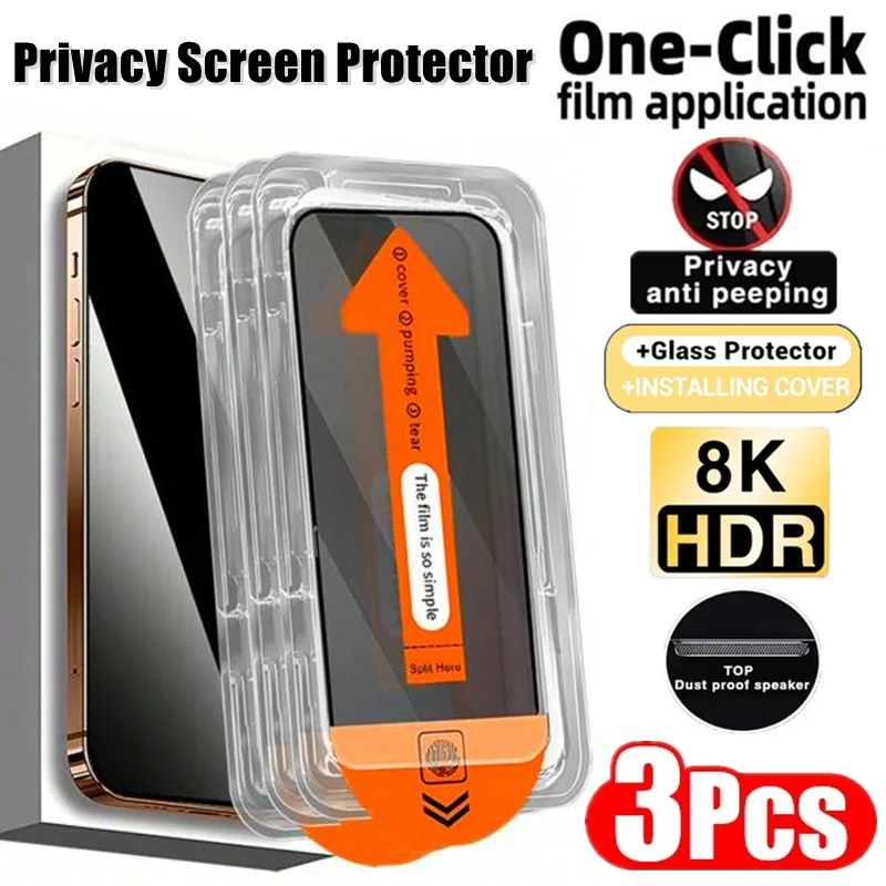 3Pcs Oleophobic Coating Dust Free Installation Privacy Screen Protector For iPhone 16 15 14 11 12 13 Pro Max XS X XR 8 Plus 16E