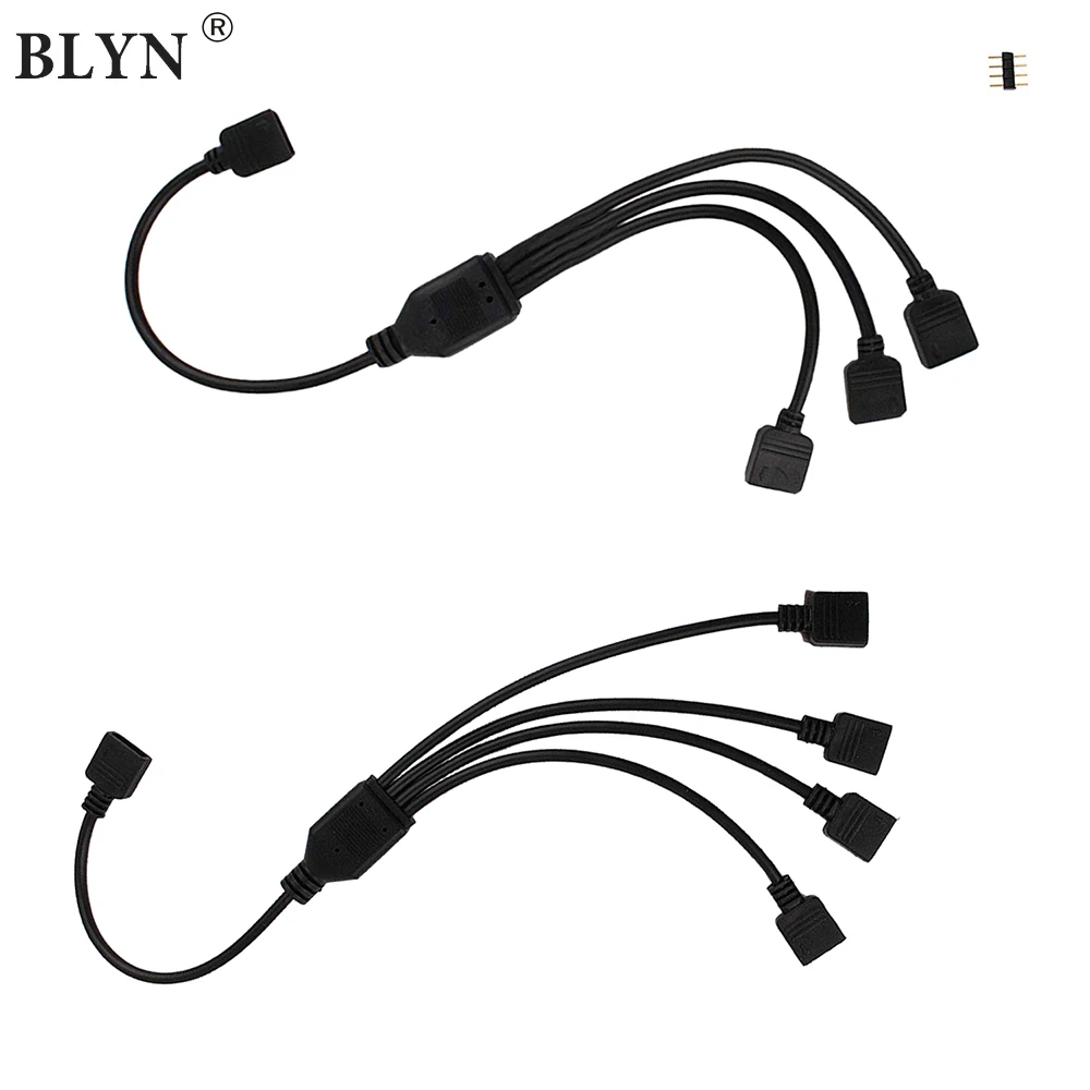 4 Pin RGB Splitter Convert Cable Connector Two Three Four Way Black Cable Connect Wire Adapter For RGB LED Strip Tape Computer