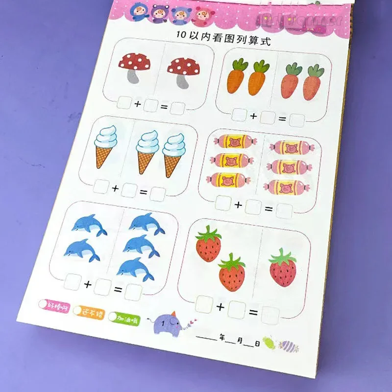 80 Pages / Book of Children's Addition and Subtraction Learning Mathematics Chinese Character Strokes Handwriting Exercise Books
