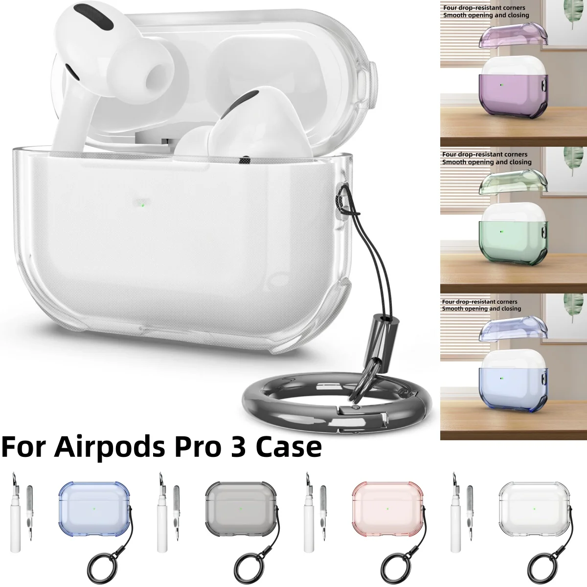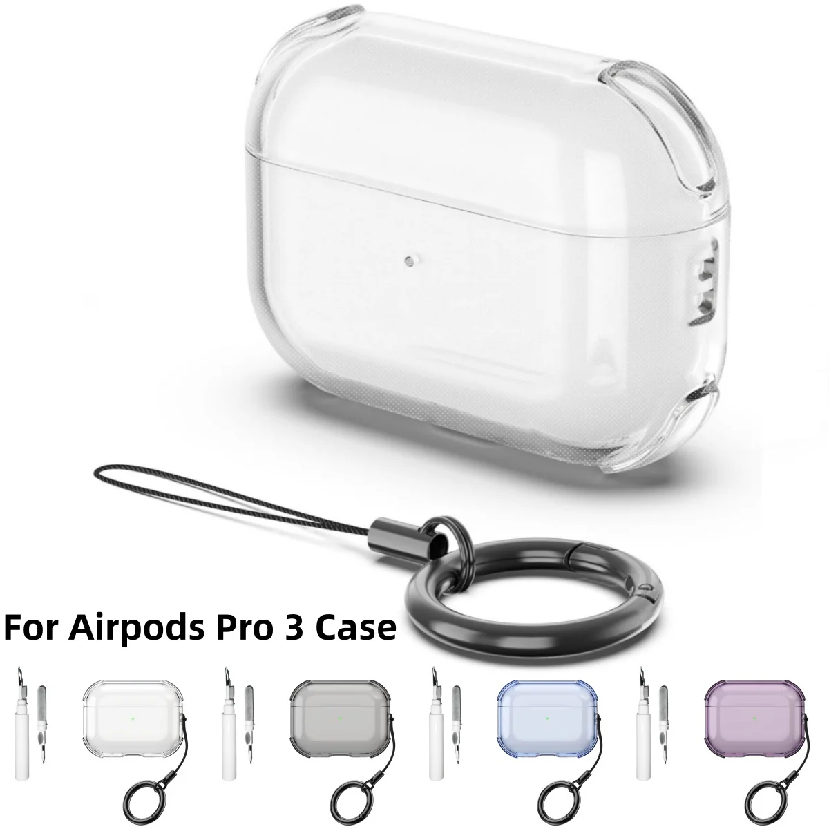 2025 Clear Case For AirPods Pro 3 with Lanyard Keychain & Cleaning Kit Full Shockproof Protective Case Cover For AirPods Pro 3