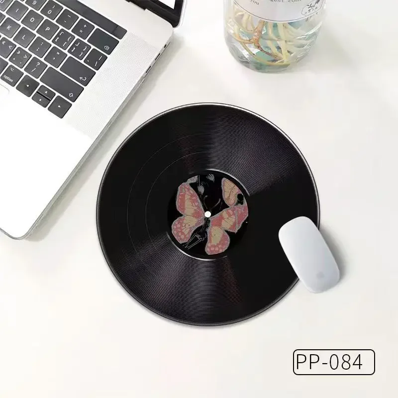 Small Vintage vinyl record round mouse pad Non-slip rubber sole waterproof design Office games universal computer desk RUG 20*20