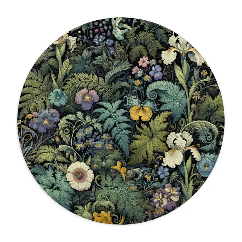 Dark Botanical Mouse Pad Wildflowers Ferns Mousepad Round or Rectangular Morris Inspired Floral Art Cottagecore Office Accessory